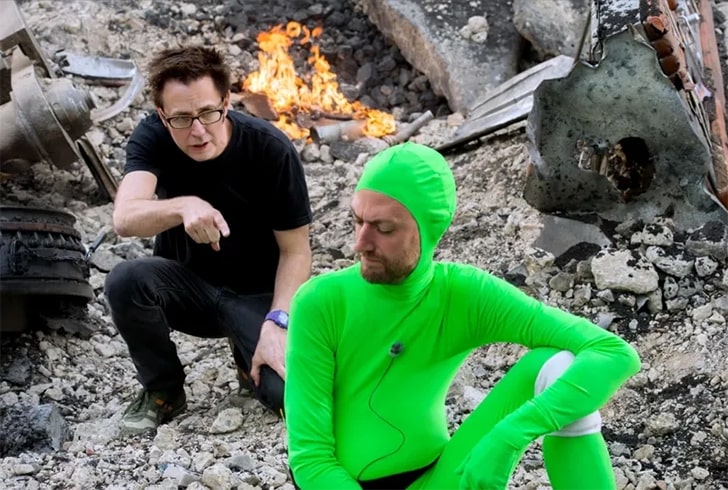 Bradley Cooper lent his A-list voice to the beloved furry character while Sean Gunn, director James Gunn’s brother, slipped into a green suit to bring Rocket’s movements to life, as seen here. Sean was the movie’s visual effects reference point, knowing Rocket’s whereabouts and moves all the time and helping other actors interact with a CGI character.