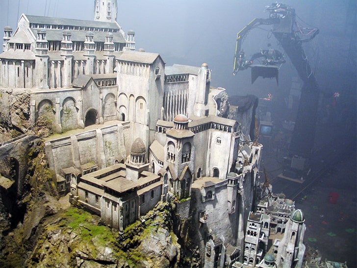 Pictured here is a painstakingly detailed and meticulously handcrafted model of the city of Minas Tirith, a pivotal location in the third film. For a time when CGI was nowhere near where it is today, Peter’s choice to film real sets and models paid off in the end.