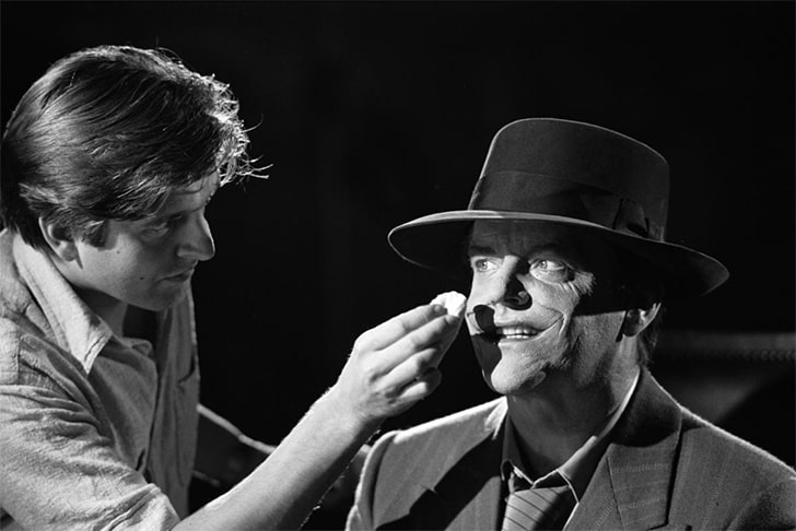 Behind the scenes, Jack’s transformation into the clown prince of crime was no laughing matter. He had to battle with the spirit gum (movie makeup’s basic unit) allergy, creating his smile with molded prosthetic pieces.