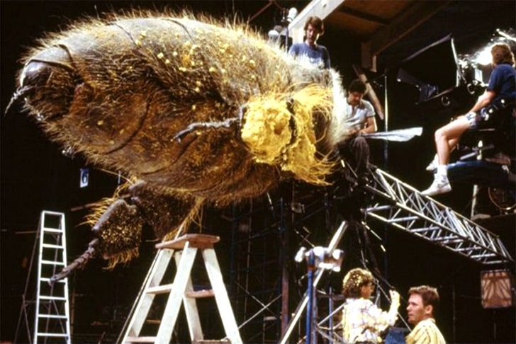 Here’s a picture of when a colossal mechanical bee stole the spotlight in “Honey, I Shrunk the Kids” of 1989. This mighty insect, painstakingly crafted, brought the movie’s unforgettable bee ride scene to life. With the magic of post-production, the CGI department’s finishing touches made this honey-loving marvel even more charming on-screen.