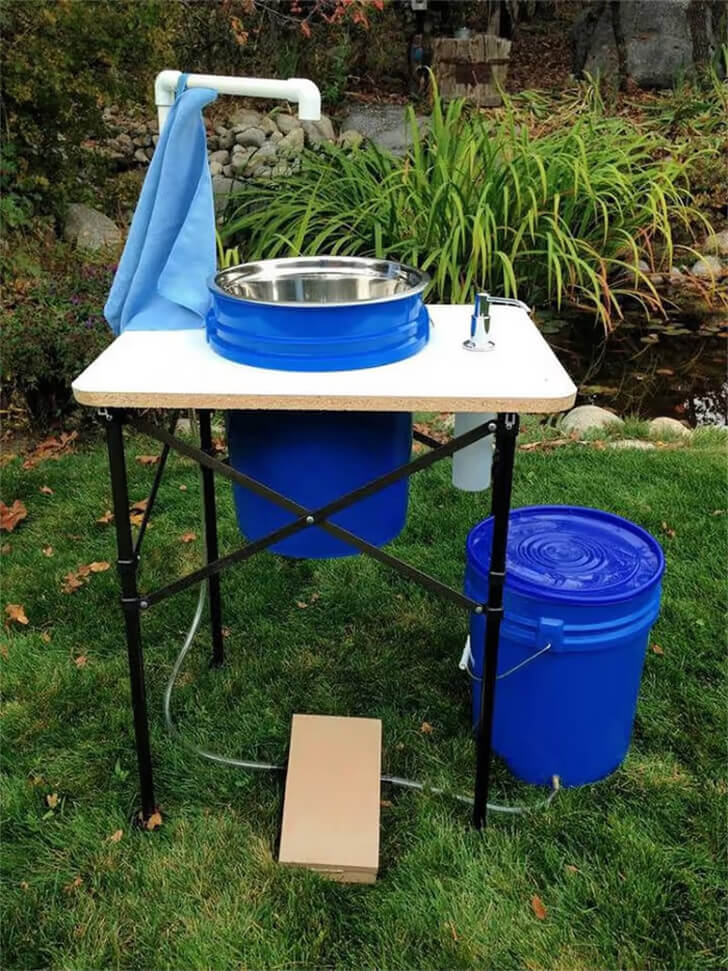 It even has a foot pump that activates the faucet, giving you clean water without touching anything. Wash up, and the used water drains into the upper bucket. It’s camping hygiene at its finest, adding a touch of ingenuity to the great outdoors with a quick foot tap.