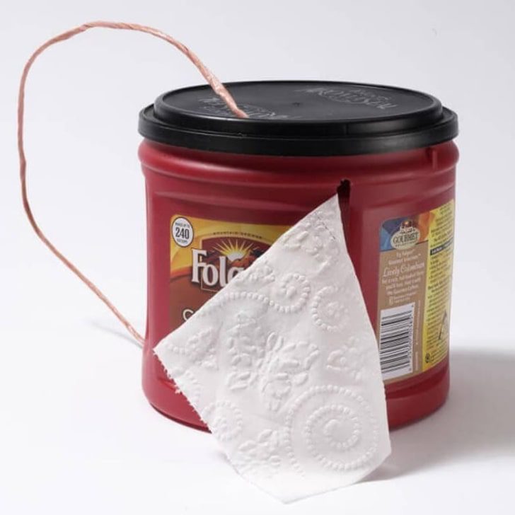 All you need to do is find a container, create a slit for the paper to pass through, and drop the roll inside. Thread a piece through the opening, and you have a working toilet paper guardian guaranteed to be ready for action!