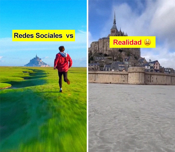 Puede haber 2 posibilidades, en la primera foto el castillo parece estar rodeado de un jardín verde muy prolijo y hermoso, o simplemente es un buen filtro de instagram. De todas formas, este chico aprovechó para capturar una gran foto.