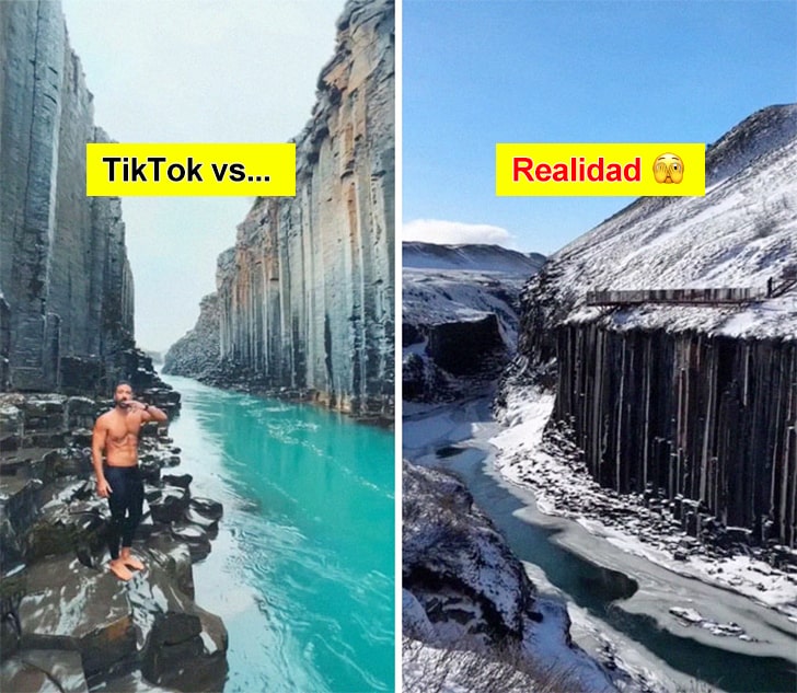 Sin embargo, en la segunda imagen, la temporada de invierno parece presentarse en su máxima expresión ya que el agua se ve congelada y los árboles nevados. Aquí estamos seguros de que nadie se animaría a mostrarse con el torso desnudo.