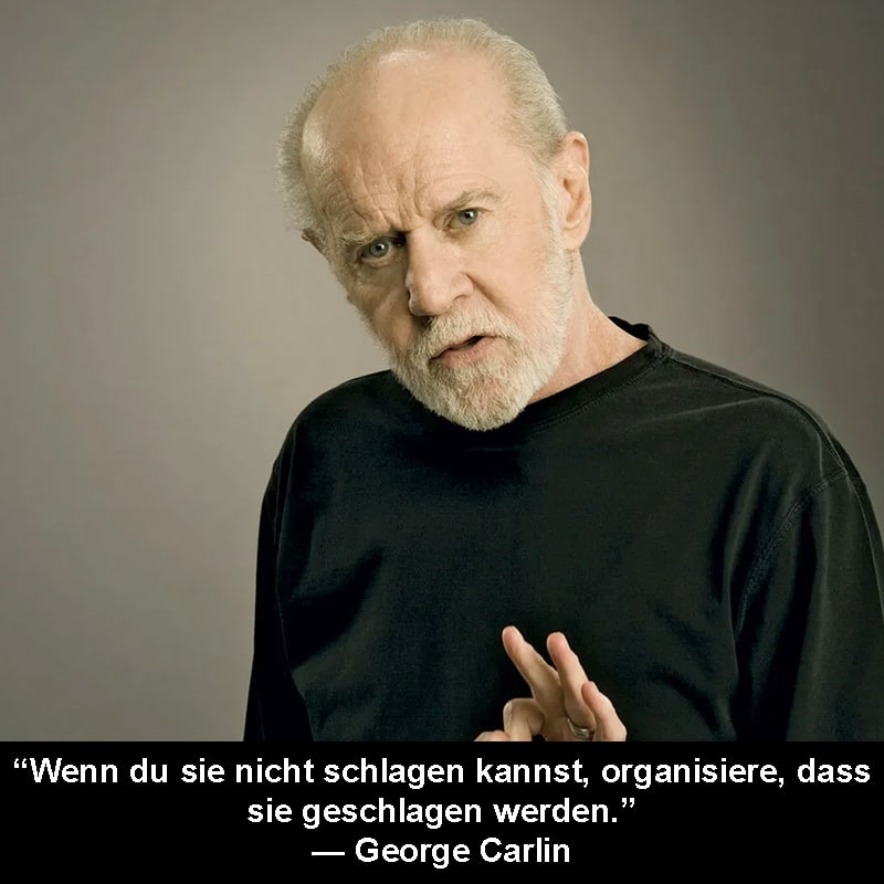 Der Komiker George Carlin wurde 1937 in New York geboren und hat sich im Laufe der Jahre auch als Radiomoderator und Sozialkritiker einen Namen gemacht. Seine Sozialkritik verband er gerne mit schwarzem Humor, das zeigt auch das folgende Zitat.