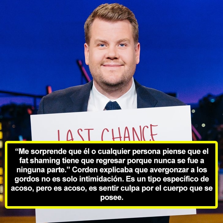 Recientemente, él reaccionó al escuchar que un presentador aseguró que el fat shaming debía volver. Corden aseguró que eso no estaba bien y que ese tipo de críticas y comentarios son un verdadero acoso. El presentador se pronunció totalmente en contra de esta actitud.