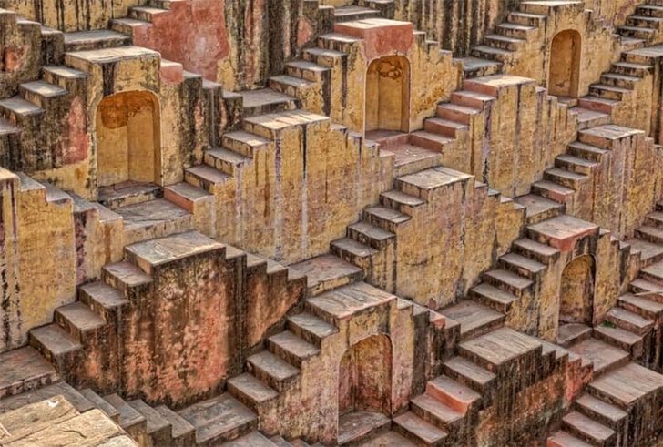Among these architectural marvels, Chand Baori stands as a remarkable example. This well plunges nearly 100 feet below the earth’s surface, featuring an intricate network of 3,500 steps distributed across thirteen levels.