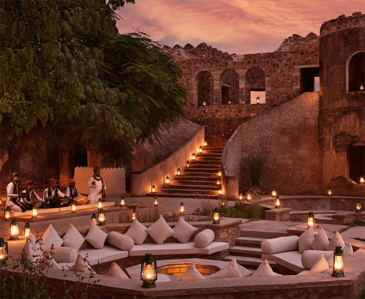 The Six Senses Fort Barwara, situated in Rajasthan, is a 700-year-old fort transformed into a luxury resort in 2021. This fort was initially owned by a wealthy and noble Rajasthani family, and a descendant collaborated with Six Senses to restore the six-acre property, including its palaces and temples, into a modern resort.