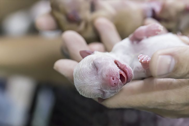 Sometimes, puppies die at birth as they are too weak to fight off any defects or illnesses that may have affected them in the womb. This little guy was very lucky to have survived as most often, defects in the placenta can cause the puppy to die because this is the only way for it to receive nutrients and oxygen.