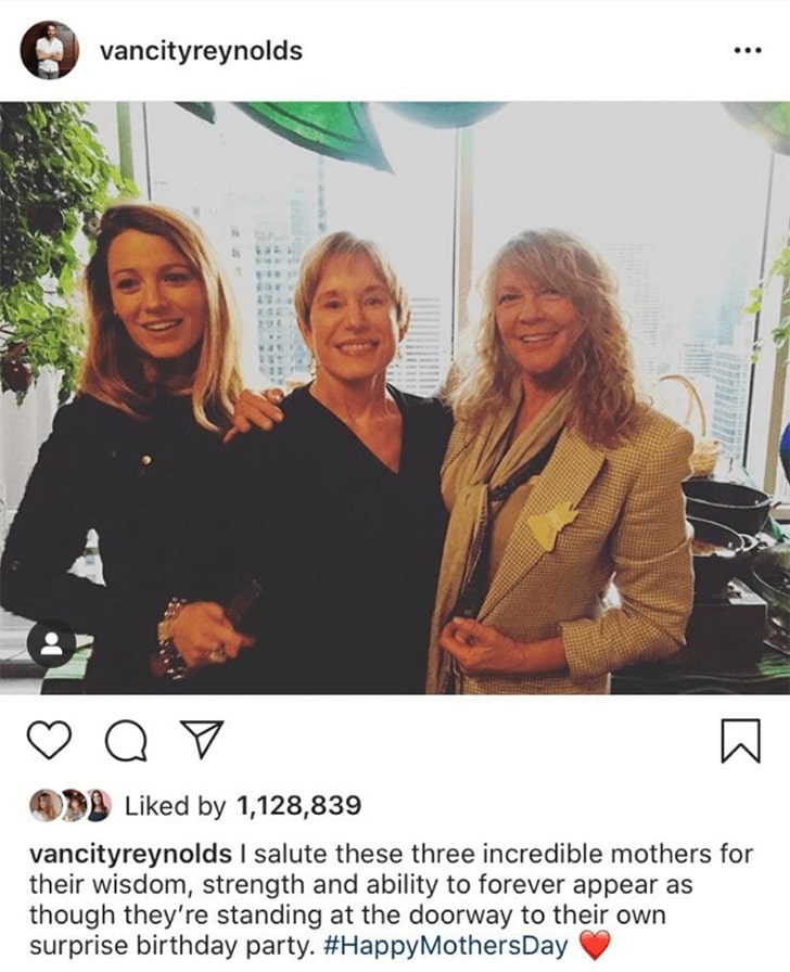 Ryan’s most heartfelt confessions always have a layer of humor. So it’s unsurprising that he included a barb in his Mother’s Day tribute to Blake, his mother, Tammy Reynolds, and mother-in-law Elaine Lively.