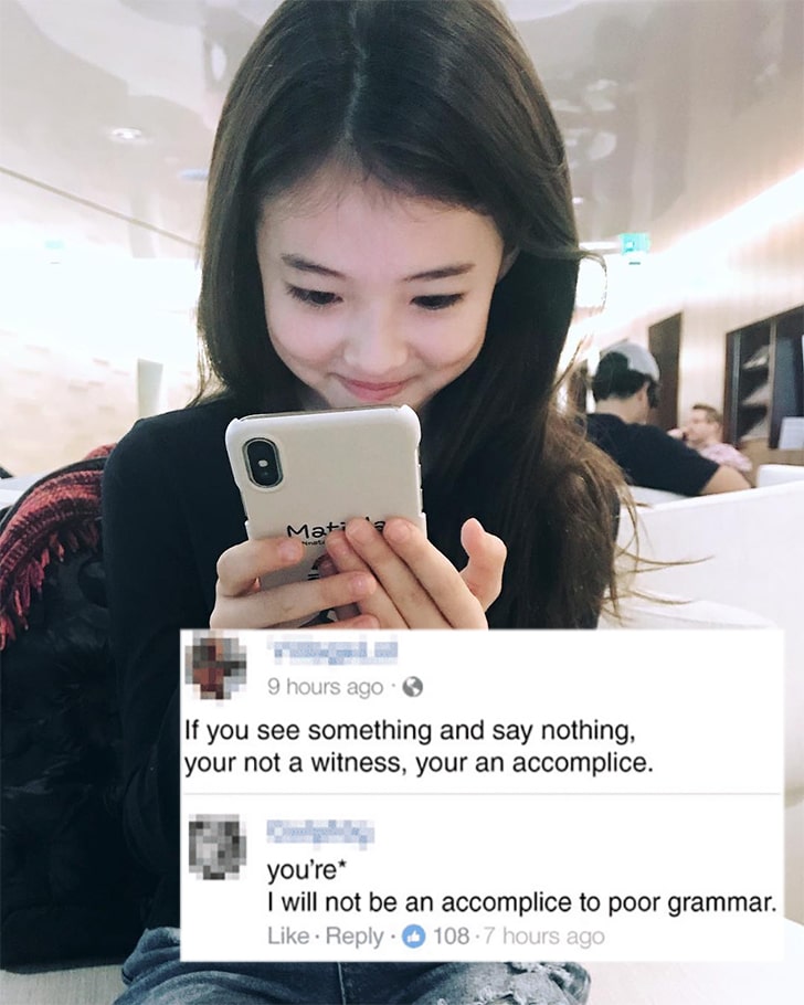 Speaking up when you witness something morally wrong is commendable, but correcting someone’s grammar on a post about morality? That’s just low. While it’s important to check our spelling and grammar, let’s not forget the bigger picture.