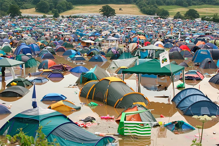 Ah, Glastonbury, the land of music, mud, and… fish tanks? In 2005, some festivalgoers found themselves in a pickle, their tents more puddled than palaces. As rainclouds unleashed their fury, campers got a crash course in “aquatic camping.”