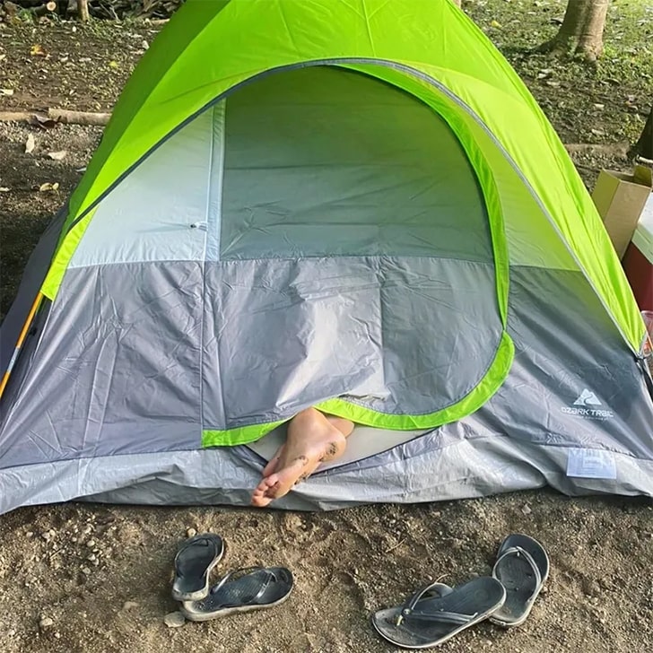 Ah, the dance of tent shopping—finding the one that whispers home, sweet home.” Well, even the perfect awning has limits, as this tall camper learned the hard way. With feet sticking out and waving hello, camping, the craved adventure, comes with quirks.