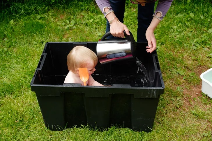 Bathing in natural water sources, like rivers and lakes, can expose you to various harmful microorganisms. Transforming a plastic box into a portable spa not only ensures her little one is squeaky clean but also safe. Camping doesn’t have to mean sacrificing comfort.