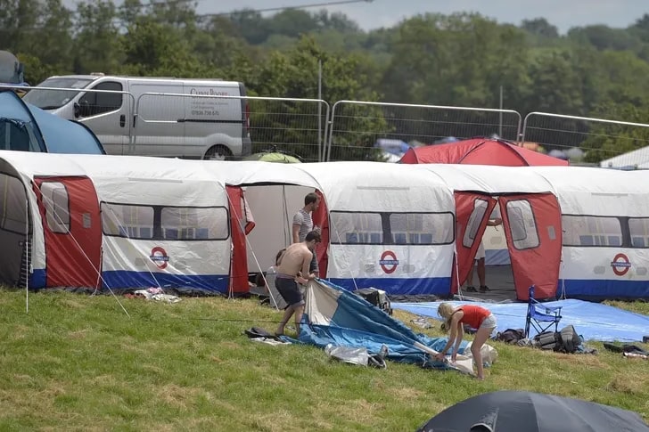 Glastonbury Festival, held in England, is one of the world’s largest and most renowned music and performing arts festivals, attracting over 200,000 attendees. This 2015 snapshot presents one standout shelter. Imagine stumbling upon a canvas that’s not just a tent—it’s a replica of an underground train!