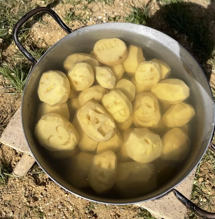 Campfire cooking is an art, an adventure, and sometimes a comedy show. Imagine carving menacing faces on your potatoes. Talk about haute cuisine meets Halloween! In the great outdoors, culinary creativity knows no bounds. These campers, armed with knives and a sense of mischief, turned simple spuds into eerie masterpieces.