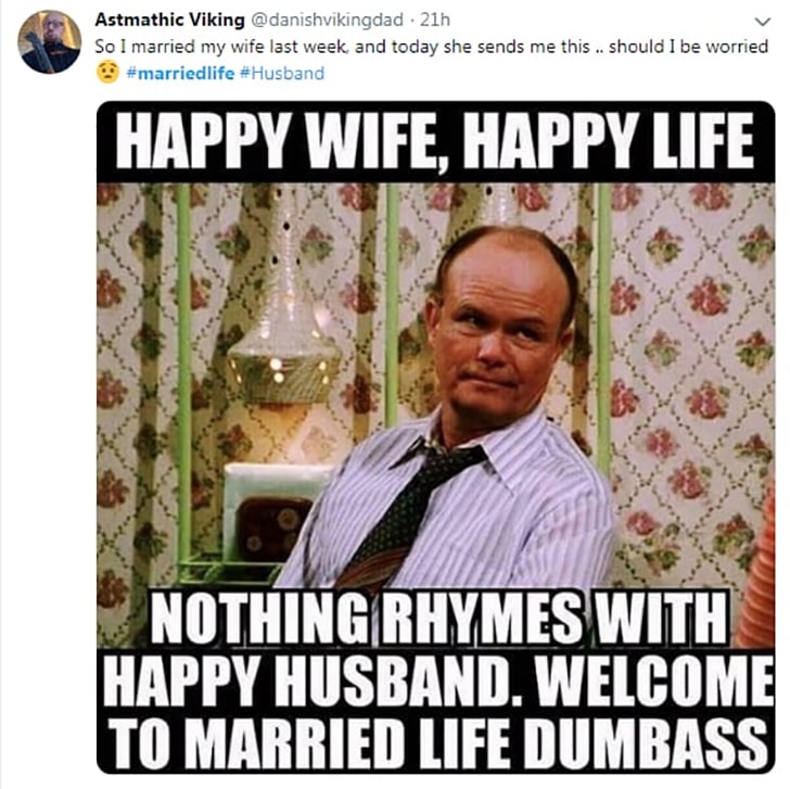 DanishVikingDad is getting a crash course in married life, and the syllabus is rhyming! His wife sends him a cheeky message: “Happy wife, happy life. Nothing rhymes with a happy husband.” Burn! But hey, there’s actually some science behind that phrase.
