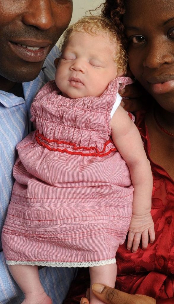 Chisom, the big brother, is palpably baffled by his newborn sister’s strikingly different appearance. “Our boy keeps coming to look at his sister and then sits down looking puzzled,” the mother of three confided in an interview with the British tabloid newspaper, The Sun.
